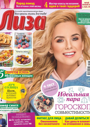 Самый популярный в России еженедельный журнал для молодых женщин «Лиза» стал еще интереснее, еще привлекательнее для читательниц. Теперь больше знаменитостей на страницах любимого журнала! Фитнес со звездой и звездный макияж, уроки стиля и самые горячие новости из жизни кумиров. А еще — модный шопинг, актуальная мода, новинки косметики и великолепные идеи для дома. Романтические истории о настоящей любви и рассказы читательниц о разных жизненных ситуациях. Аспекты психологии, секреты успешных отношений с окружающими и искусство сохранения любви.